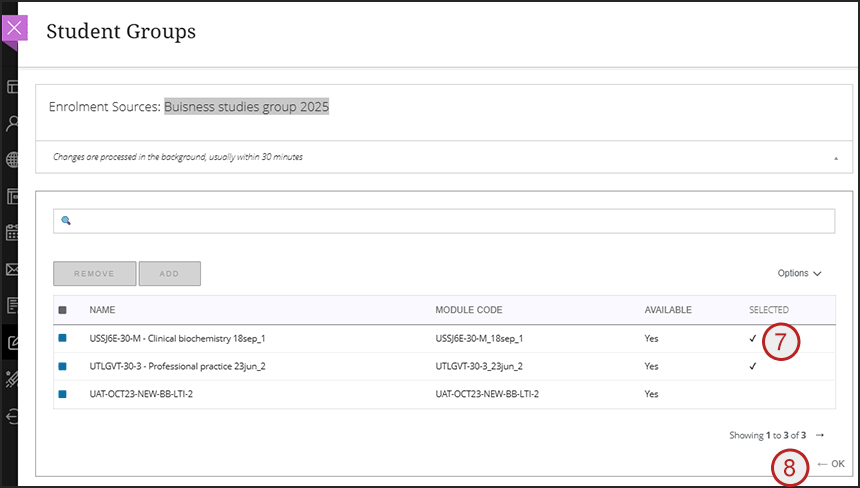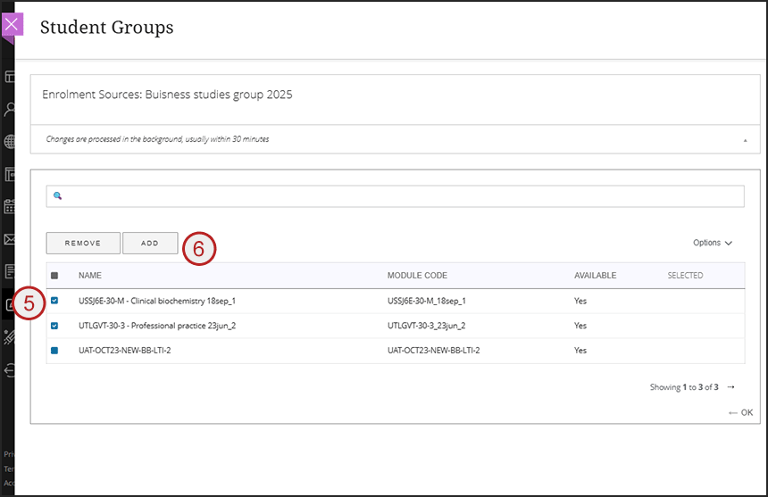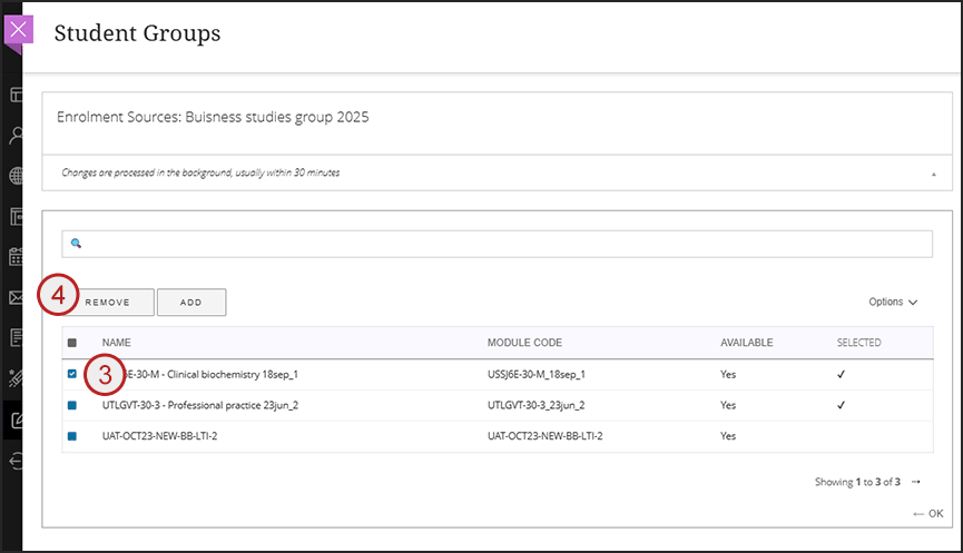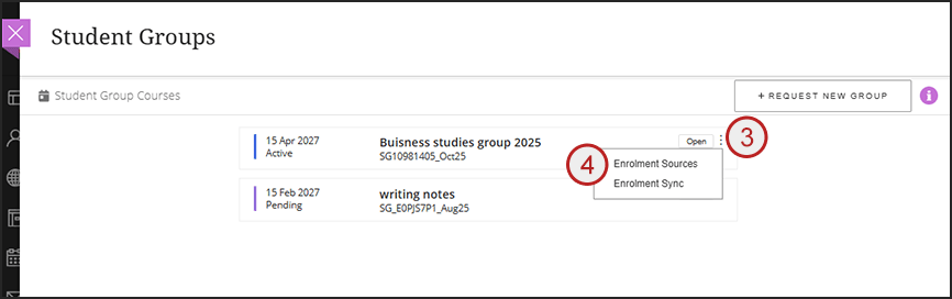Existing Student Groups created from ISIS will still be available in Blackboard until they expire. Course enrolments will continue to feed from ISIS until the end of 2025 when ISIS will be replaced. You can use this new tool to manage new enrolments by selecting Enrolment Sources. Any new groups will need to be requested through Blackboard.