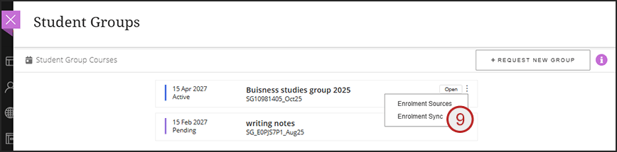 - Click on the three dots next to the group you have just set the enrolments for and select Enrolment Sync